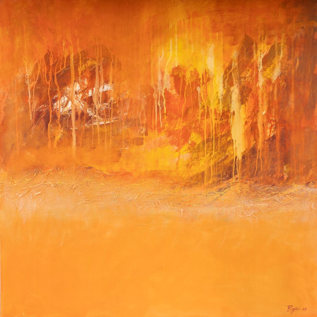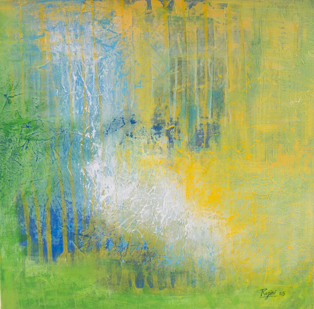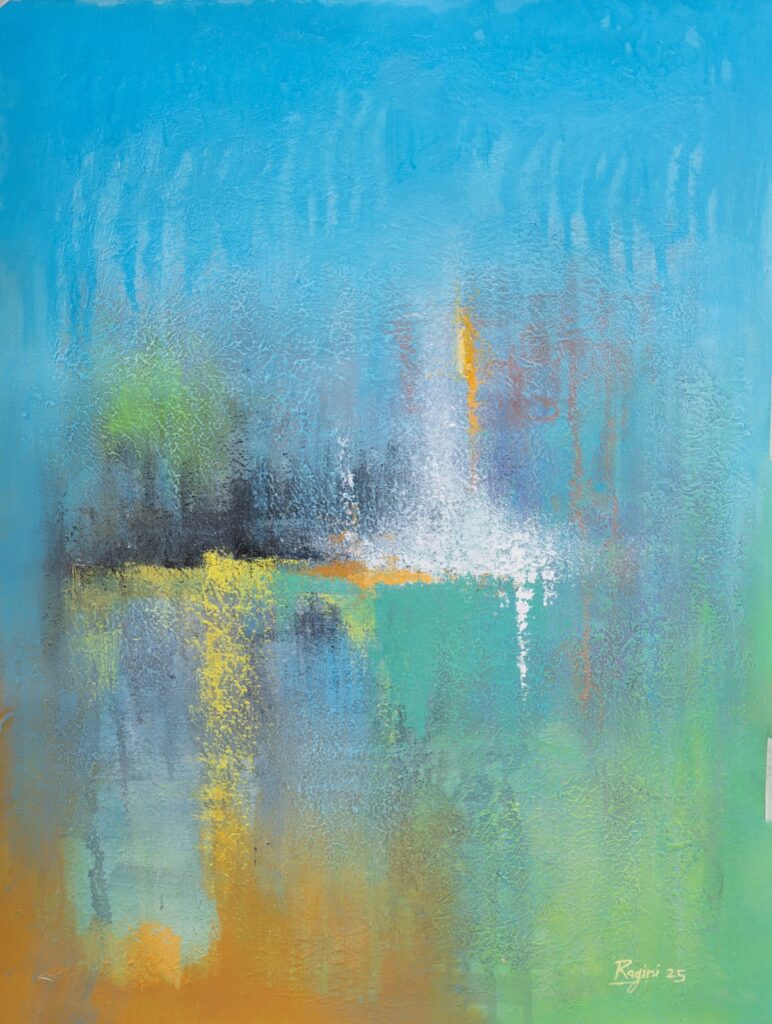 Built with translucent layers, subtle contrasts, and a keen eye for harmony, Ragini’s abstract compositions explore the delicate bridge between perception and imagination. Her work invites you to pause, to reflect, to lose and perhaps find yourself within shifting tones and textures.