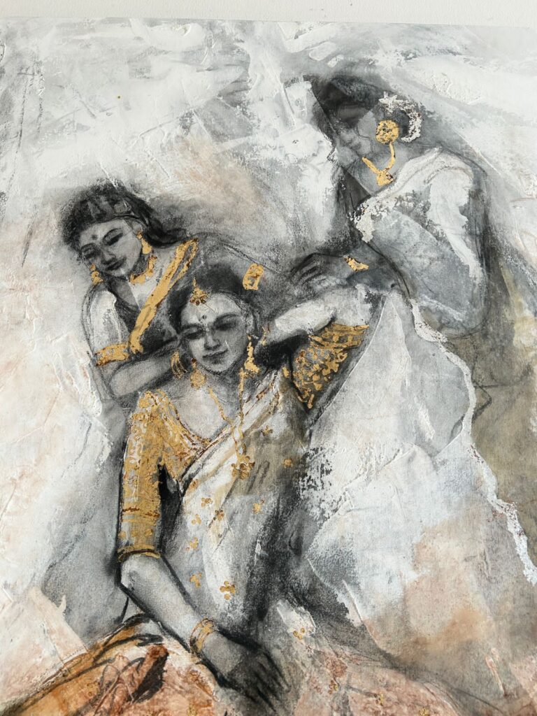 Maitrry is renowned for her expressive paintings, which she creates using various mediums such as oil, acrylic, oil pastels, and mixed media. Her artistic style is deeply contemporary, and her work resonates with human emotions, particularly those of women. Love, happiness, despair, and sadness are among the emotions vividly portrayed in her artwork, which is often described as soul-touching.ends GNI