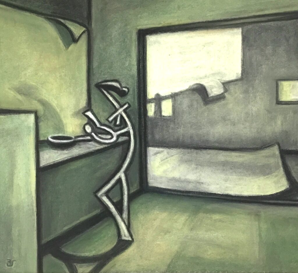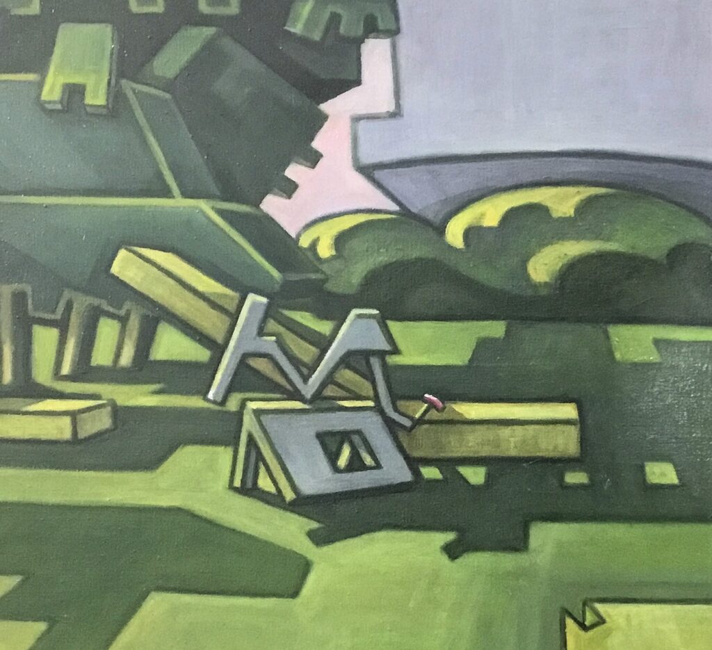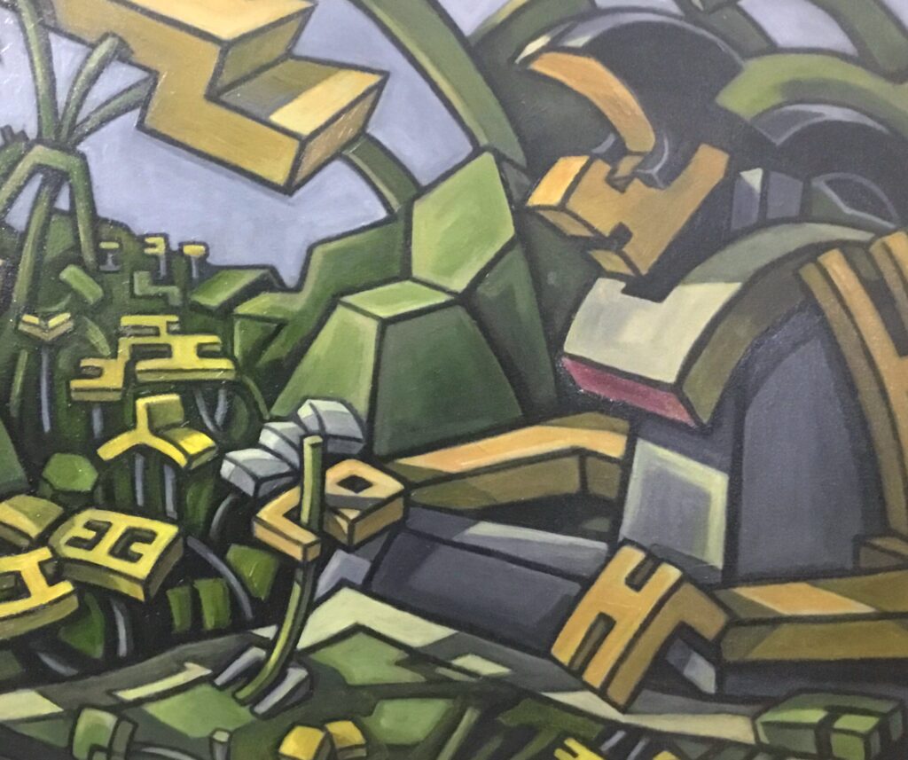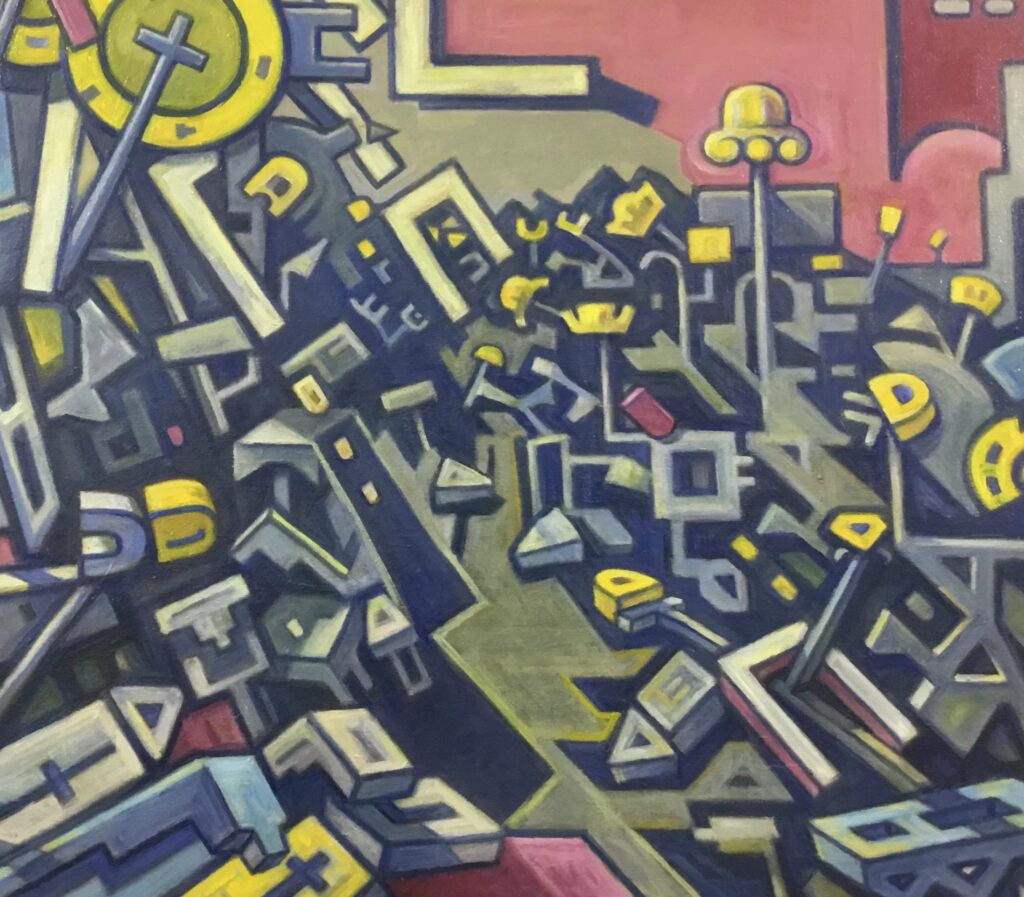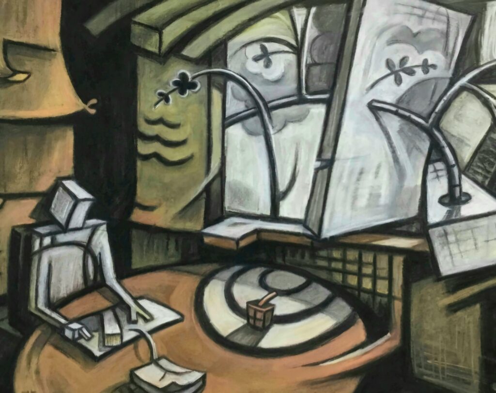 Trained under Frank Lobdell, renowned for his contributions to the Bay Area Figurative Movement, Amitabh inherits a sensibility rooted in the idea of the image’s autonomy. Lobdell’s emphasis on abstraction bearing a vestige of corporeality echoes subtly through Amitabh’s canvases. However, Amitabh does not merely echo his mentor’s idiom; he reworks and transcends it. His visual grammar moves beyond expressive abstraction or narrative figuration, into a painterly syntax that fuses the symbolic and the mundane in a surreal yet coherent schema.
