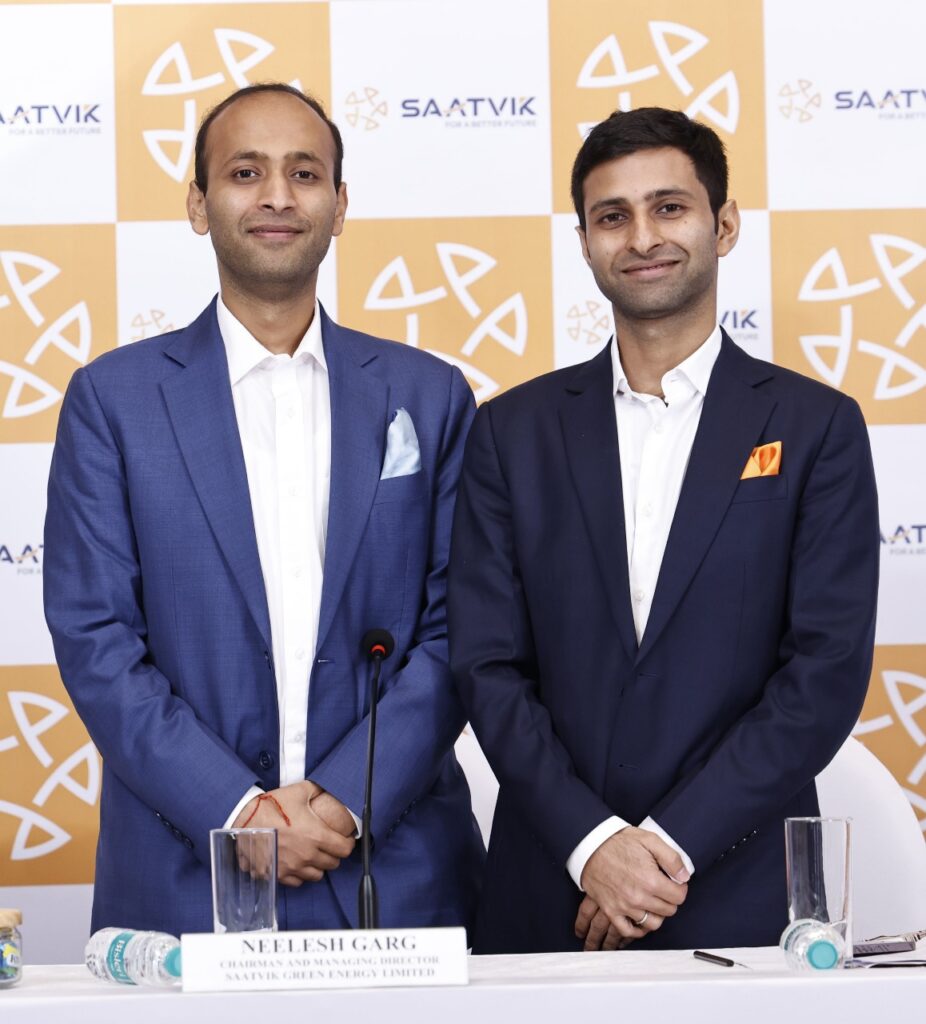 Saatvik 1 (L-R): Management of Saatvik Green Energy Limited – Mr. Neelesh Garg, CMD; Mr. Manik Garg, MD at the press conference to announce the company’s forthcoming Initial Public Offering.