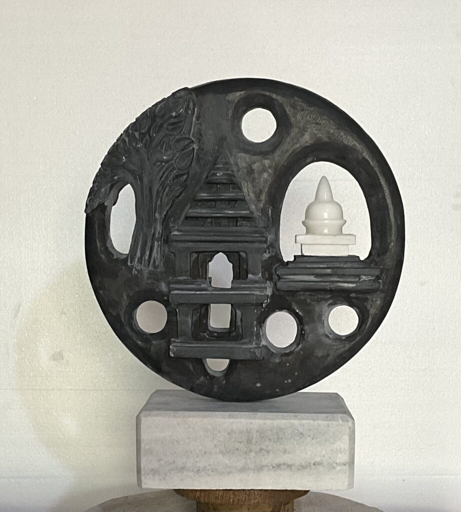 His works reveal a careful balance between solidity and openness. Carved voids, layered planes, and architectural motifs evoke sacred spaces while remaining resolutely abstract. Each chisel mark becomes a temporal gesture, an assertion of continuity that acknowledges rupture. The stone is listened to, negotiated with, and allowed to assert its own agency within the final form.