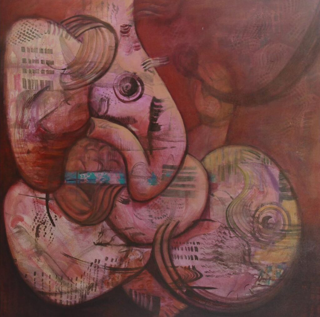 Material process plays a central role in the artworks. Working with acrylic, ink, collage, and layered textures, Shetty builds surfaces gradually through addition, erosion, and restraint. Marks remain visible, carrying traces of time and decision, while the balance between what is revealed and what is concealed is carefully maintained.