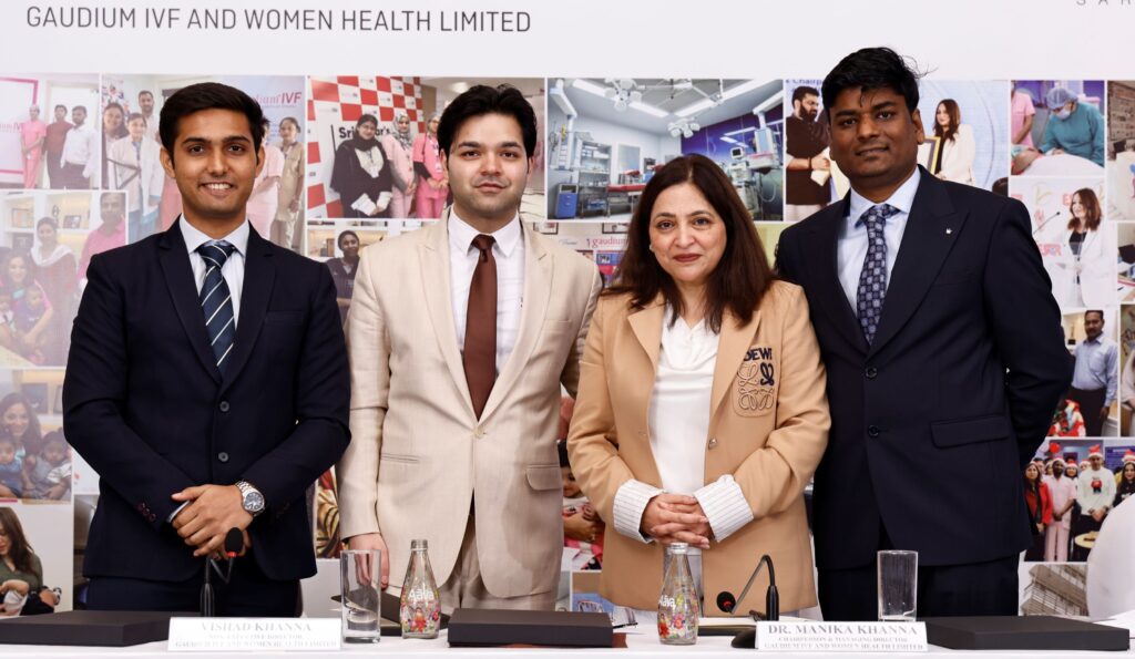 · Gaudium 3 (Left To Right): Mr. Viren Kanojia, Senior Analyst, Sarthi Capital Advisors Private Limited; Mr. Vishad Khanna, Non- Executive Director, Gaudium IVF And Women Health Limited; Dr. Manika Khanna, Chairperson & Managing Director, Gaudium IVF And Women Health Limited; And Mr. Rakesh Kumar Sharma, Chief Financial Officer, Gaudium IVF And Women Health Limited